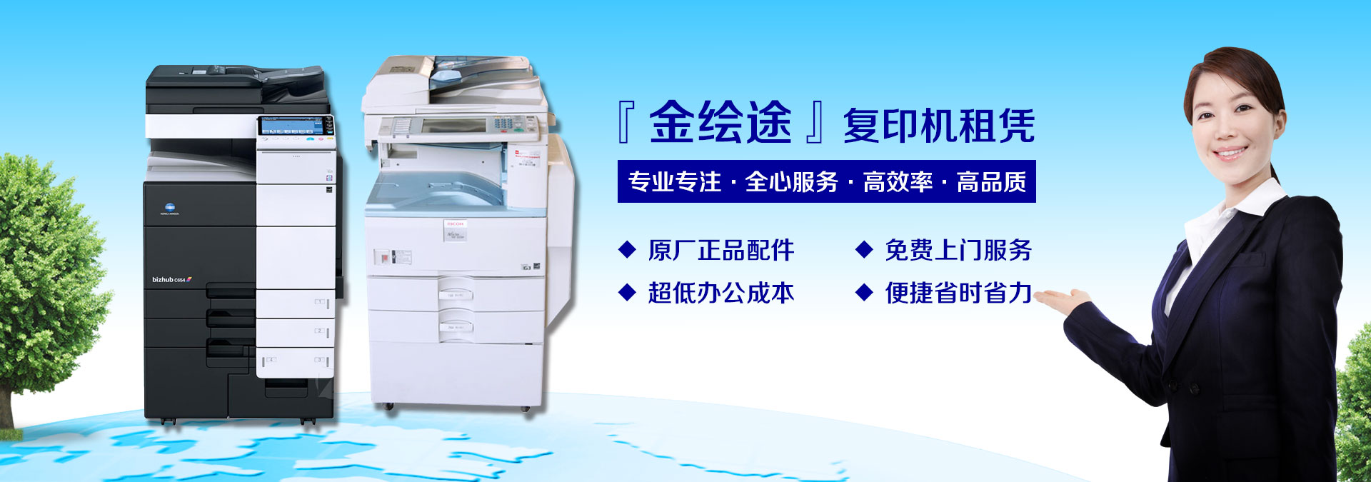 金繪途復(fù)印機(jī)租賃順應(yīng)客戶(hù)需求提供辦公產(chǎn)品整合方案,為企業(yè)解決辦公設(shè)備雜亂的現(xiàn)狀,簡(jiǎn)化流程,構(gòu)建先進(jìn)的辦公信息交流平臺(tái),削減辦公成本,提高工作效率,實(shí)現(xiàn)辦公彩色化、彩色黑白文件輸出同步。